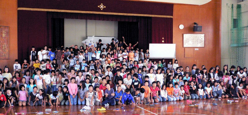 京都府教育委員会の夢大使(大志)派遣事業で八幡市立橋本小学校を訪問し、5,6年生全員、205人に対してこの立体に関する講義と、穴あき四面体オブジェの製作を行ないました。