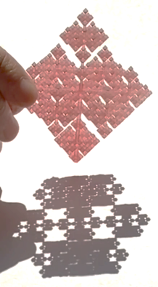 H-フラクタルの場合に T-フラクタル の場合より光をあてて正方形になる方向がたくさんあるのは,H-フラクタルがダブルイマジナリーキューブであることと関係しています。