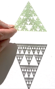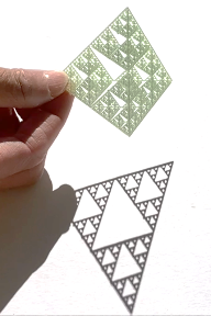 - シェルピンスキー四面体の場合には,a, b, c の和が奇数となる方向から光をあてれば正の面積の影ができ,偶数なら面積が 0 の影ができます。