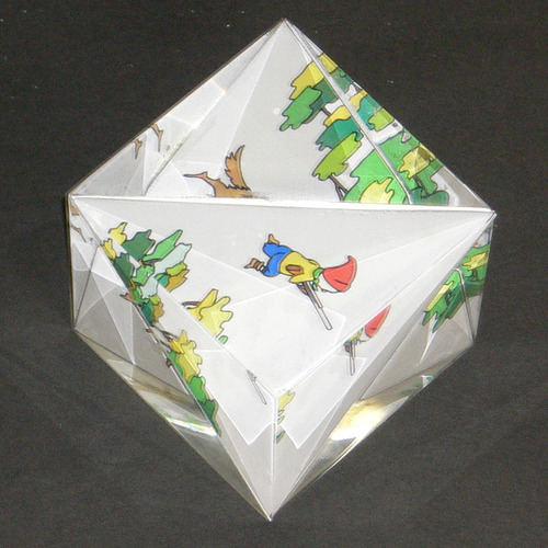 の写真は、立方体の箱の中に、左図のように正三角形の紙が2枚入っているだけ